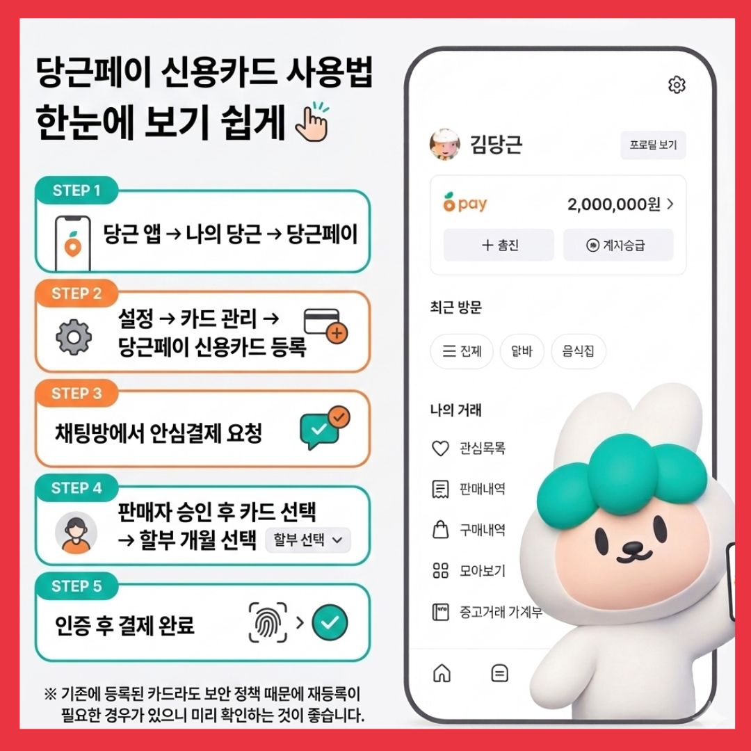 특히 당근페이 신용카드 할부를 활용하면 목돈 부담을 줄이면서 안전하게 거래할 수 있습니다.
