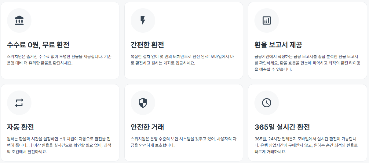 여러 환전 서비스를 사용해본 결과, 초보자에게 가장 적합한 앱은 스위치원이었습니다.